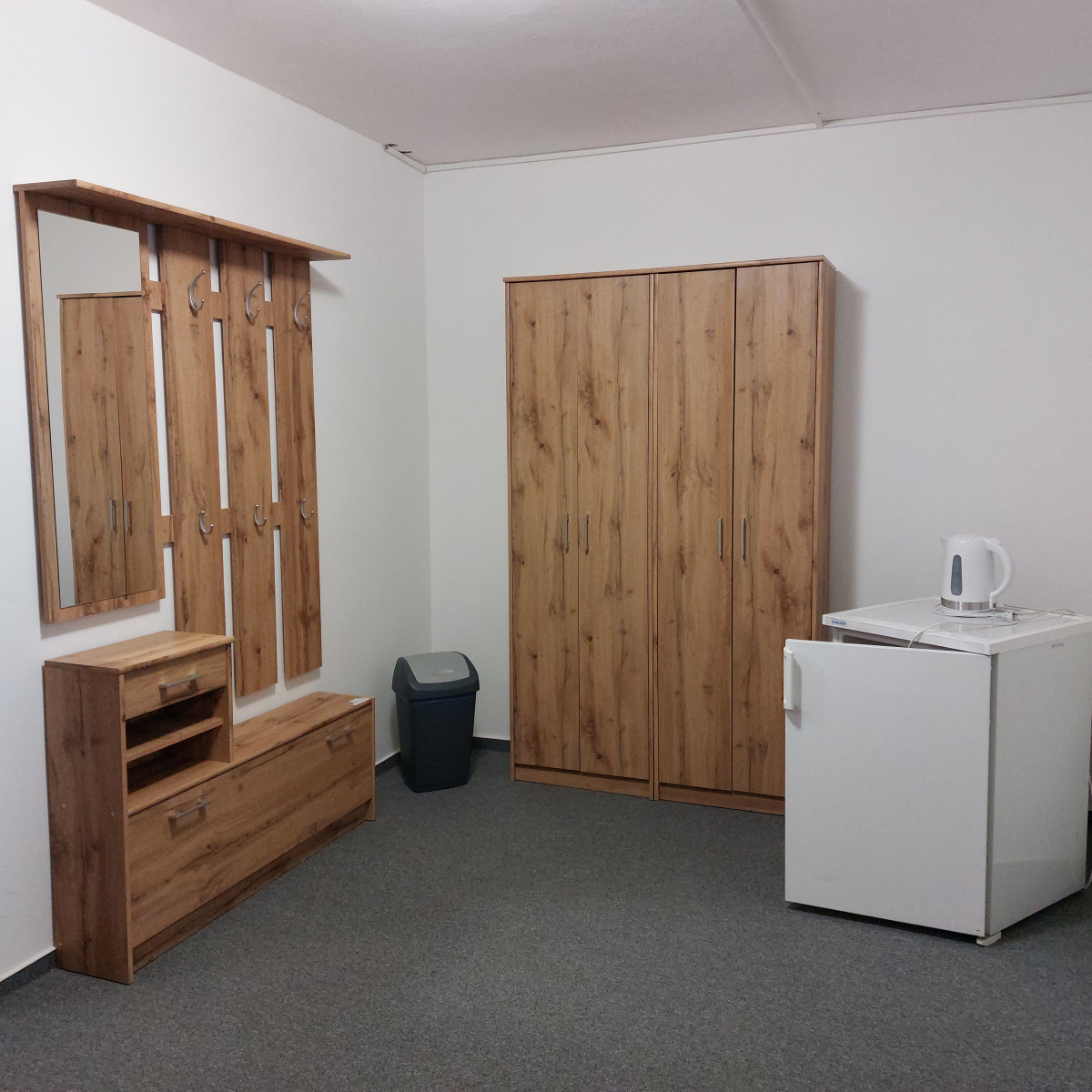 Predsieň ubytovacej bunky ponúka dostatok priestoru pre Vašu batožinu, jej súčasťou je šatníková skriňa so zrkadlom, botník, chladnička, kúpelňa a toaleta. Pri ubytovní máte nárok na bezplatné parkovanie a internetové Wi-Fi pripojenie.