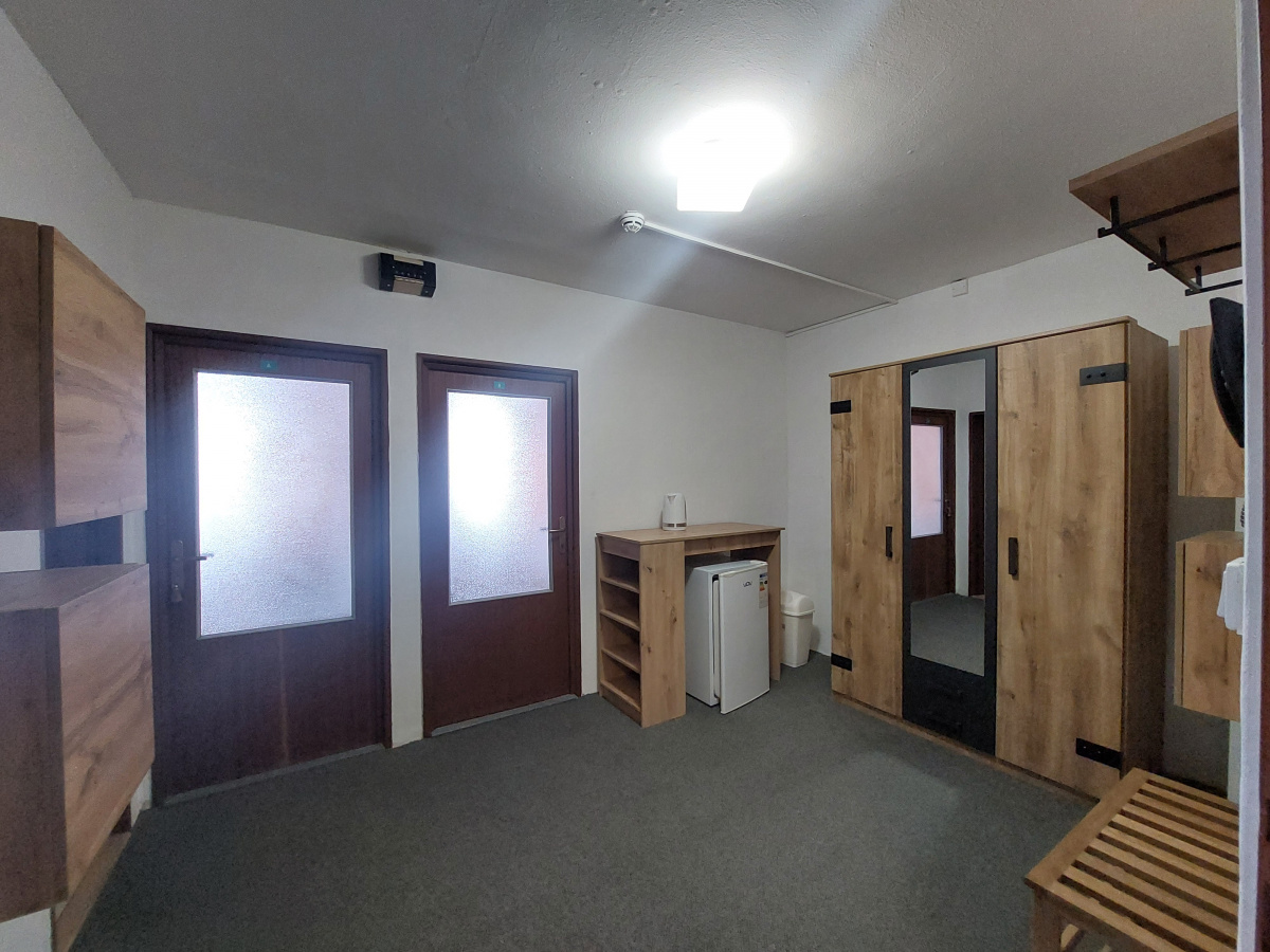 Ubytovacia bunka pozostávajuca z dvoch dvojložkových izieb a spoločnej predsiene, poskytne pohodlné ubytovanie štvorčlennej rodine, či partii priateľov (rozloha 34m2 ).